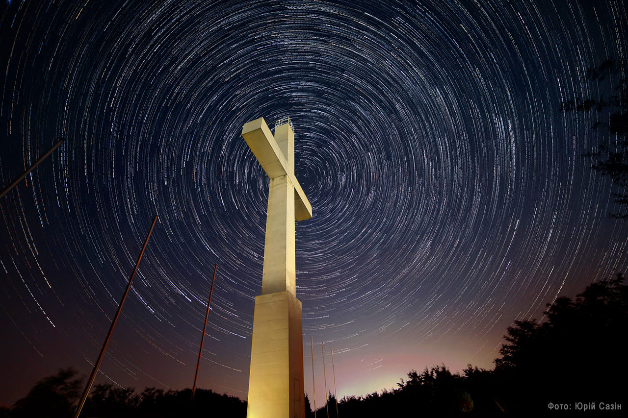 - Найкраще спостерігати з Дерценського пагорбу, де встановлений найвищий хрест в Україні.