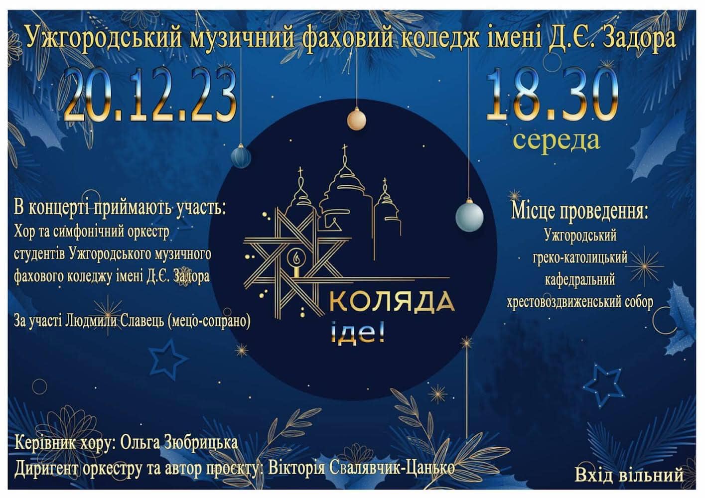 Ужгородців та гостей запрошують на різдвяні концерти учнів музичного коледжу ім. Задора, 18 та 20 грудня, під час яких будуть виконані популярні твори.