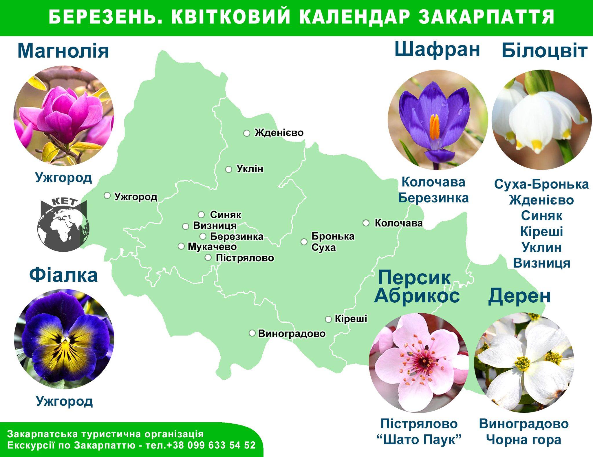 Якщо ви мрієте про квіткову фотосесію або просто хочете насолодитися красою пробудження природи, наш квітковий календар допоможе спланувати подорож у найкращі місця Закарпаття.