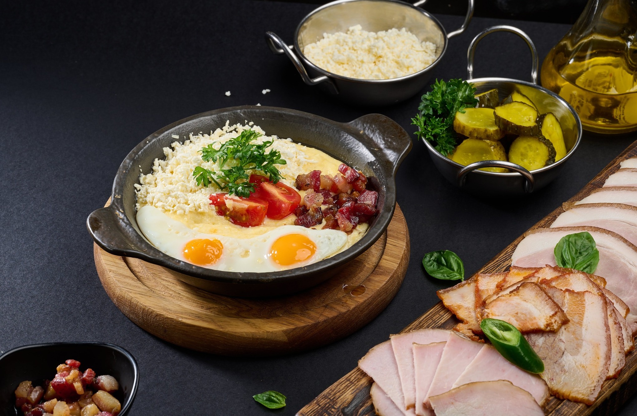 - Гарніри. Картопляні страви, овочі на грилі чи кремовий шпинат підкреслюють багатство текстур та смаків закарпатської кухні.