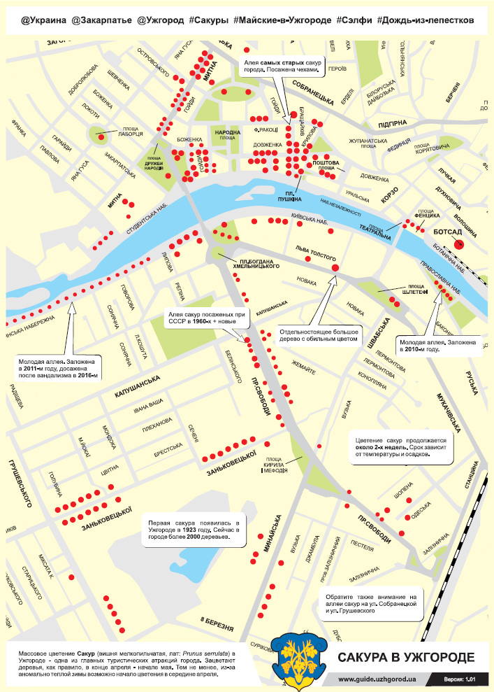 Карта цвітіння сакури в Ужгороді від Олександра Богданова