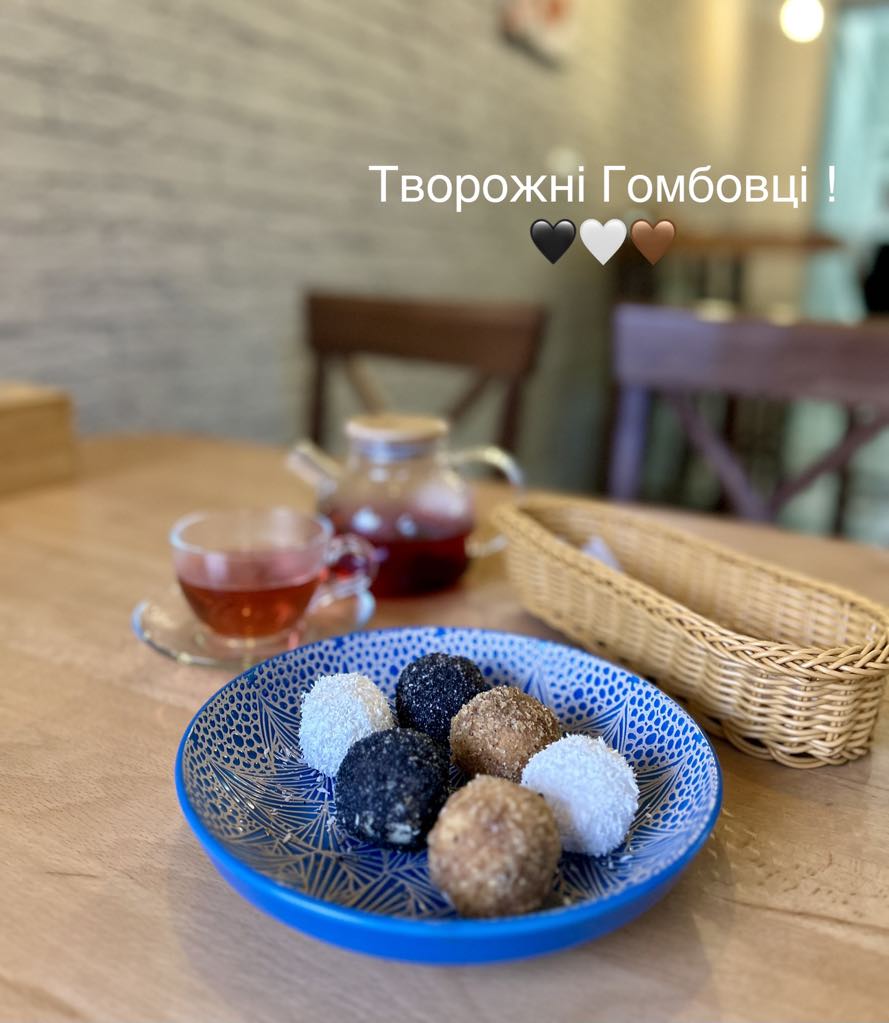 Відвідувачам пропонують творожні гомбовці – із маком, кокосом та горіхом. Вартість – 165 гривень., вага – 300 г.