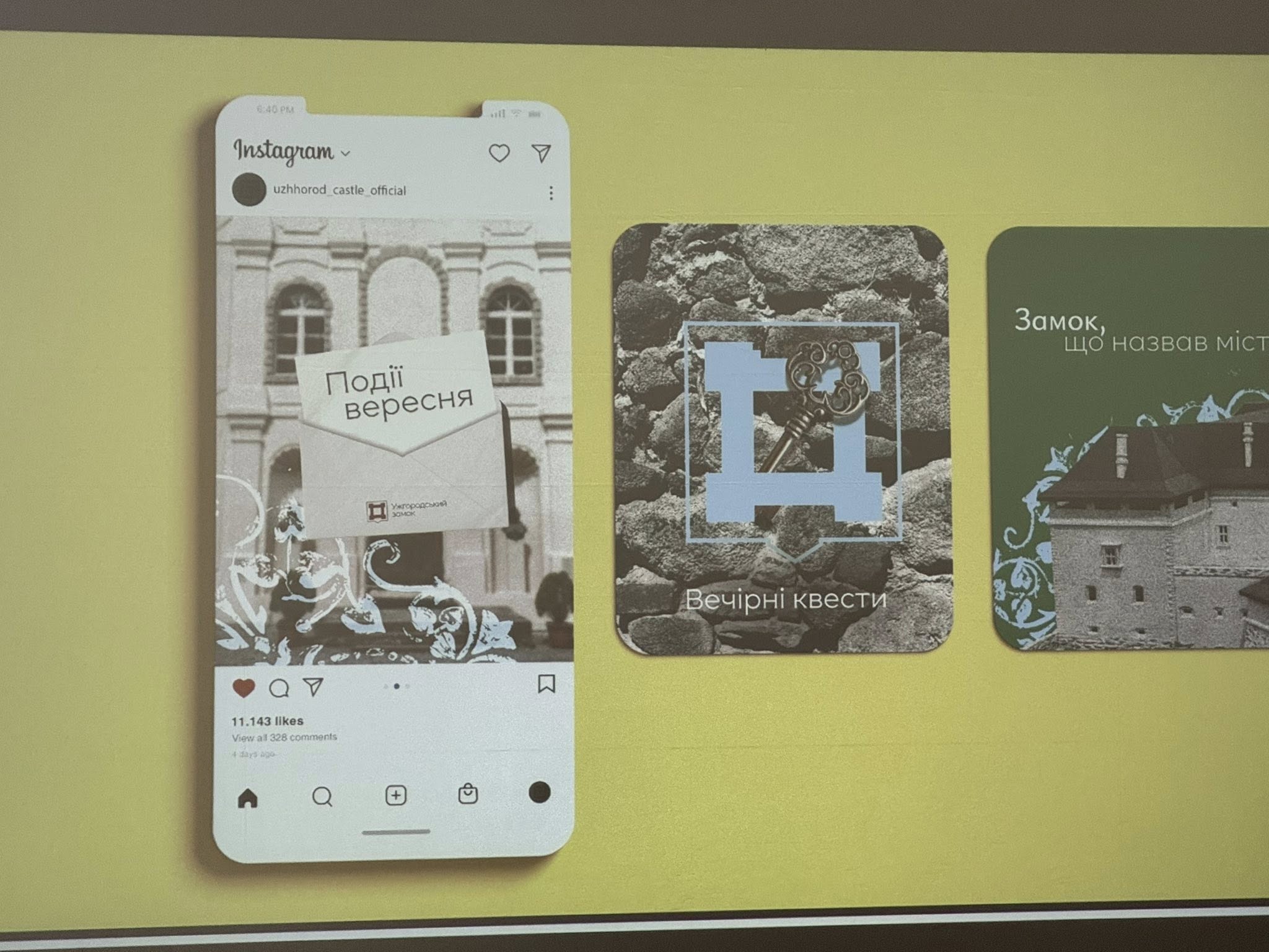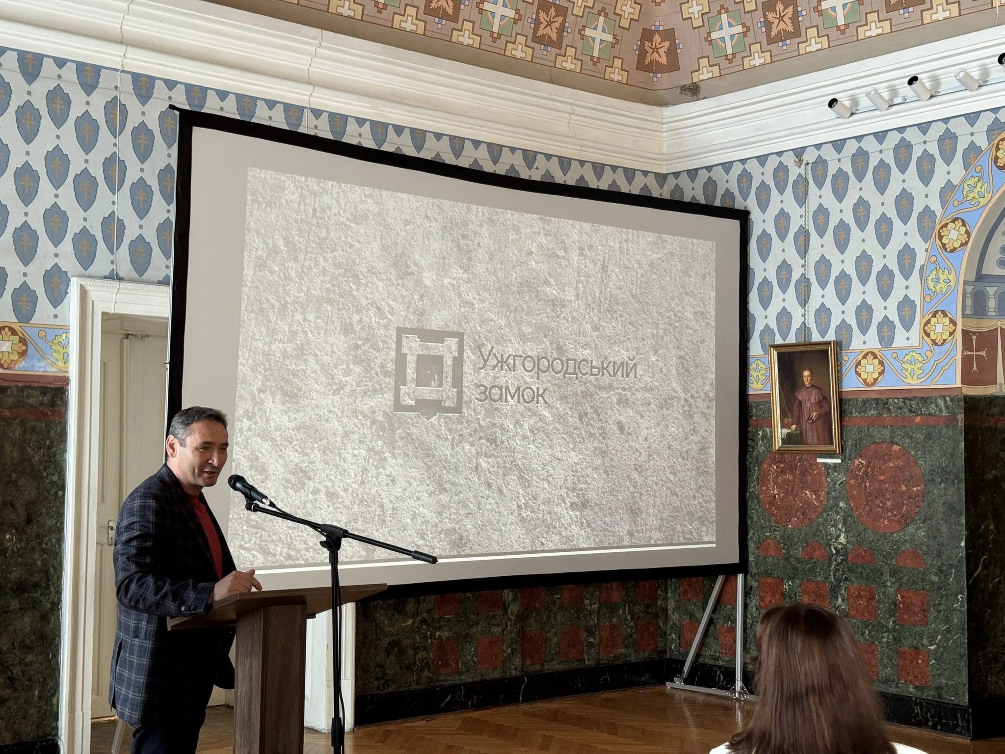 Директорка музею Ольга Шумовська розповіла про важливість концепції оновленого бренду Ужгородського замку та окреслила його ключові особливості. За її словами, новий візуальний стиль і комунікаційна стратегія були розроблені у рамках міжнародного проєкту HUSKROUA «Цифрові рішення для об’єктів спадщини Сабінова та Ужгорода», що реалізується за підтримки Європейського Союзу у межах програми Interreg Next Угорщина – Словаччина – Румунія – Україна.