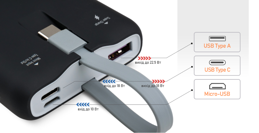 УМБ можуть мати різні порти для зарядки пристроїв. Найпоширеніші – це USB-A, USB-C і micro-USB. USB-C стає все більш популярним завдяки своїй універсальності та здатності передавати більшу потужність. Важливо вибрати УМБ з достатньою кількістю портів, щоб ви могли заряджати кілька пристроїв одночасно. Наприклад, якщо у вас є смартфон, планшет і бездротові навушники, вам знадобиться УМБ з трьома портами.