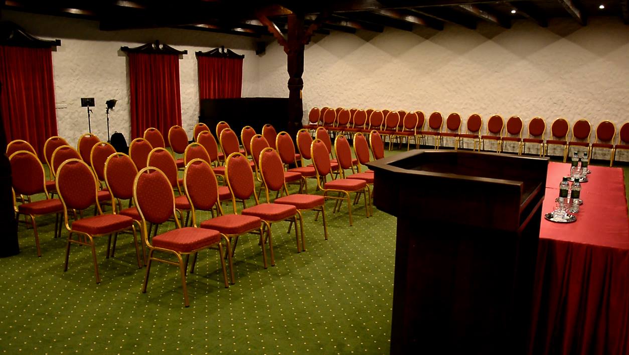 Просторий конференц-зал на 120 місць оснащений необхідними меблями та презентаційним обладнанням.
