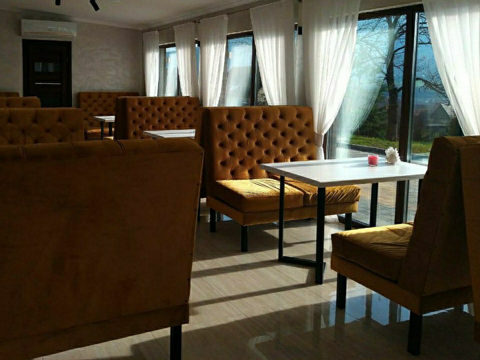 На першому поверсі у нас є працює ресторан, де Ви можете замовити собі смачні страви по меню, насолодитися ароматною кавою або гарячим чаєм. Є великий вибір сніданків (не входять у вартість номеру). Також у ресторані можна замовити банкет.