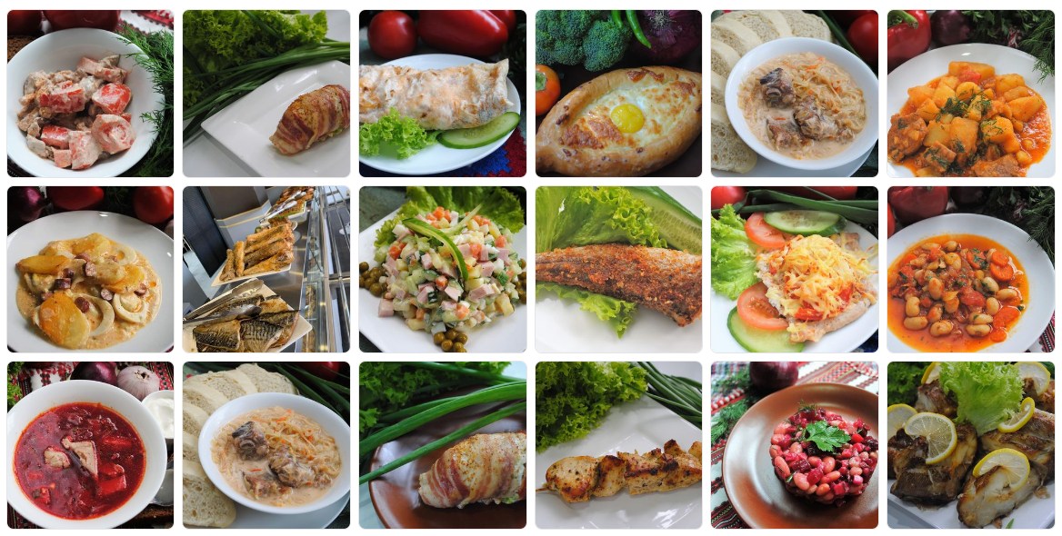 Тут ви можете зробити для себе справжнє відкриття та скуштувати рокот крумплі з ковбасками, деруни, плов з куркою, плов з грибами, бефстроганов, биточки в грибному соусі, аджахурі зі свинини, голубці, човлент з грибами, пшонка з овочами, карбонара, фарфале, лазанья, різні запіканки з грибами, страви з картоплі, рису, овочі гриль та звісно м’ясні страви, стейки чи котлети у тому числі парові, рибні страви.