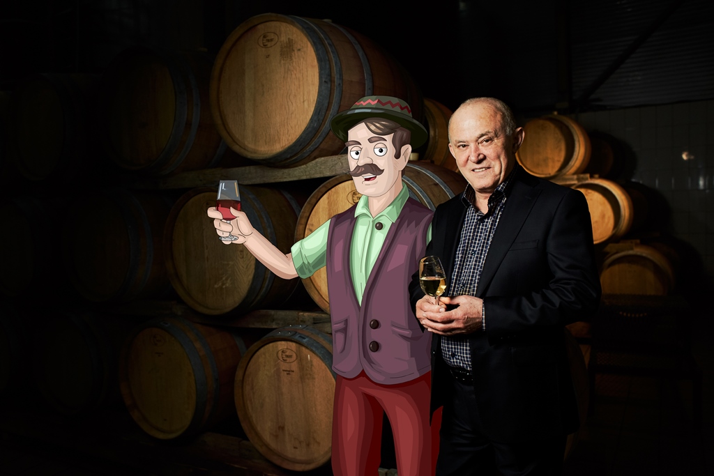 На фото: Зустріч через віки: засновник Шато Чизай Геннадій Гутман і винороб Чиз.Це перший Музей історії і культури виноградарства та виноробства у Західній Україні і другий такий у державі.
