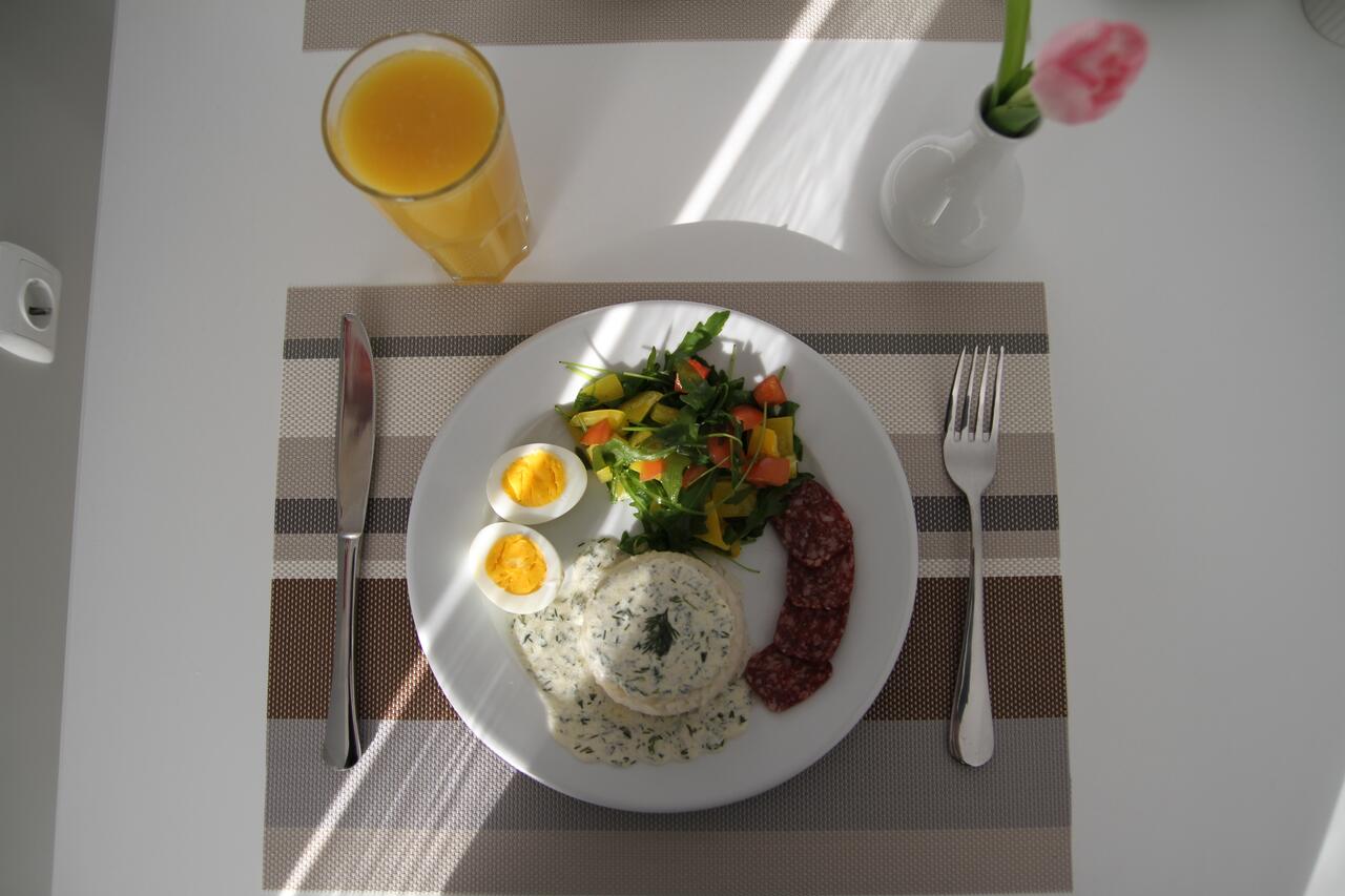 Тут ви зможете скуштувати страви традиційної кухні Закарпаття. При потребі, у випадку пізнього заїзду для проживаючих в готелі, ви можете передзвонити та домовитись про вечерю.